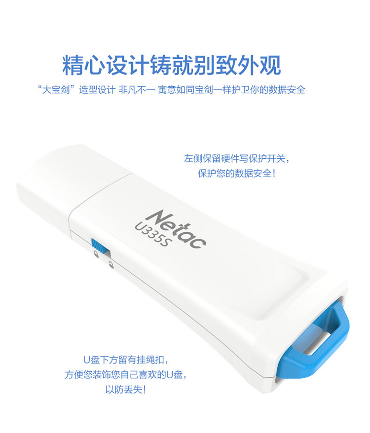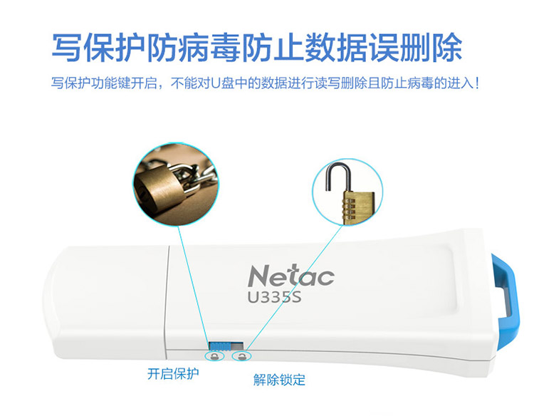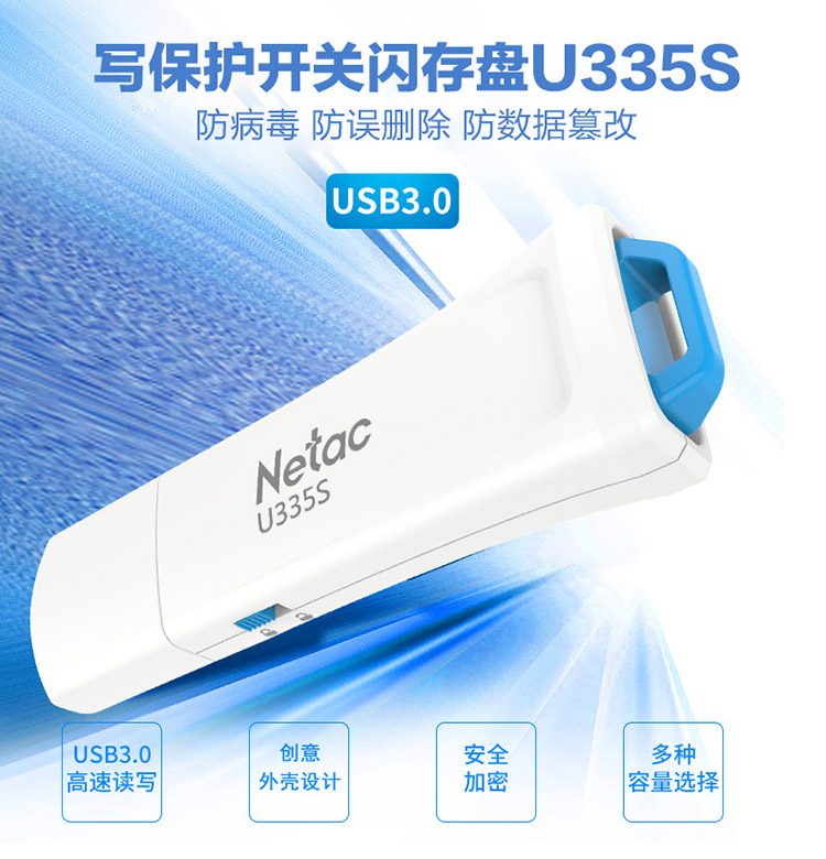 朗科 Netac U335S USB3.0写保护数据安全防病毒U盘加密安全优盘防删除 带锁只读开关 64GB