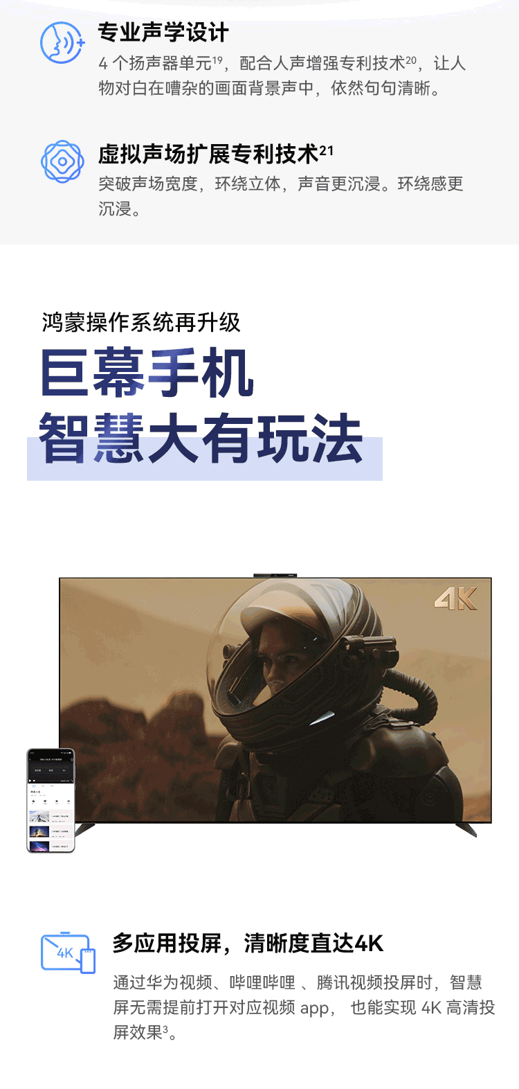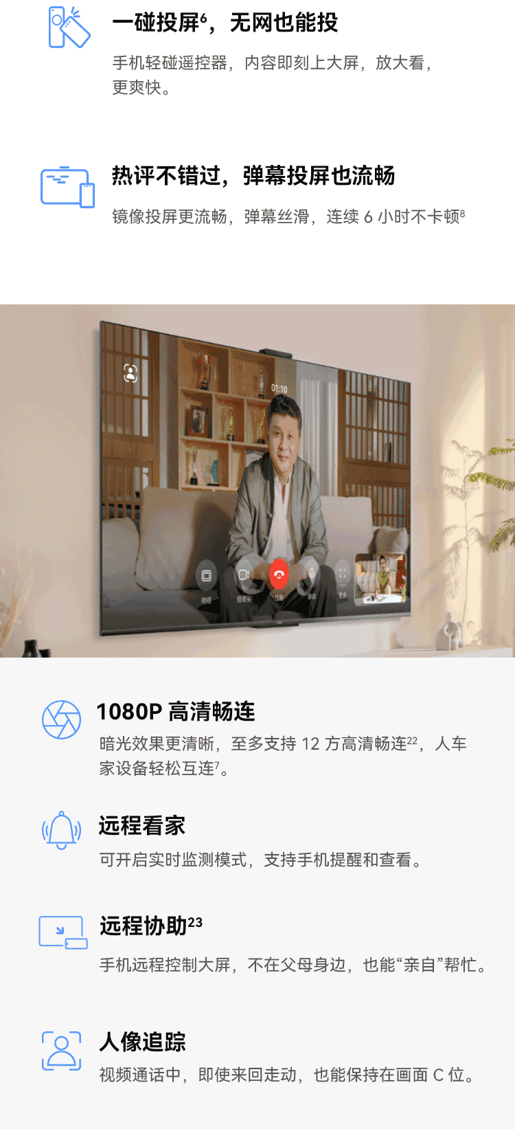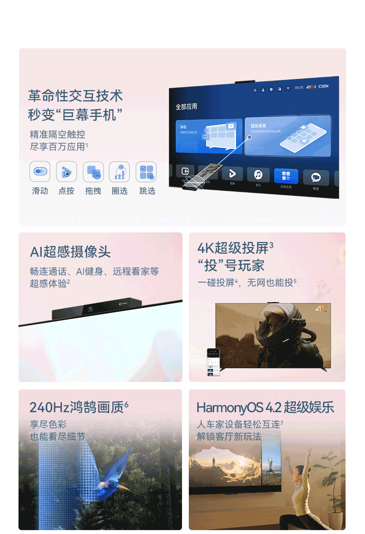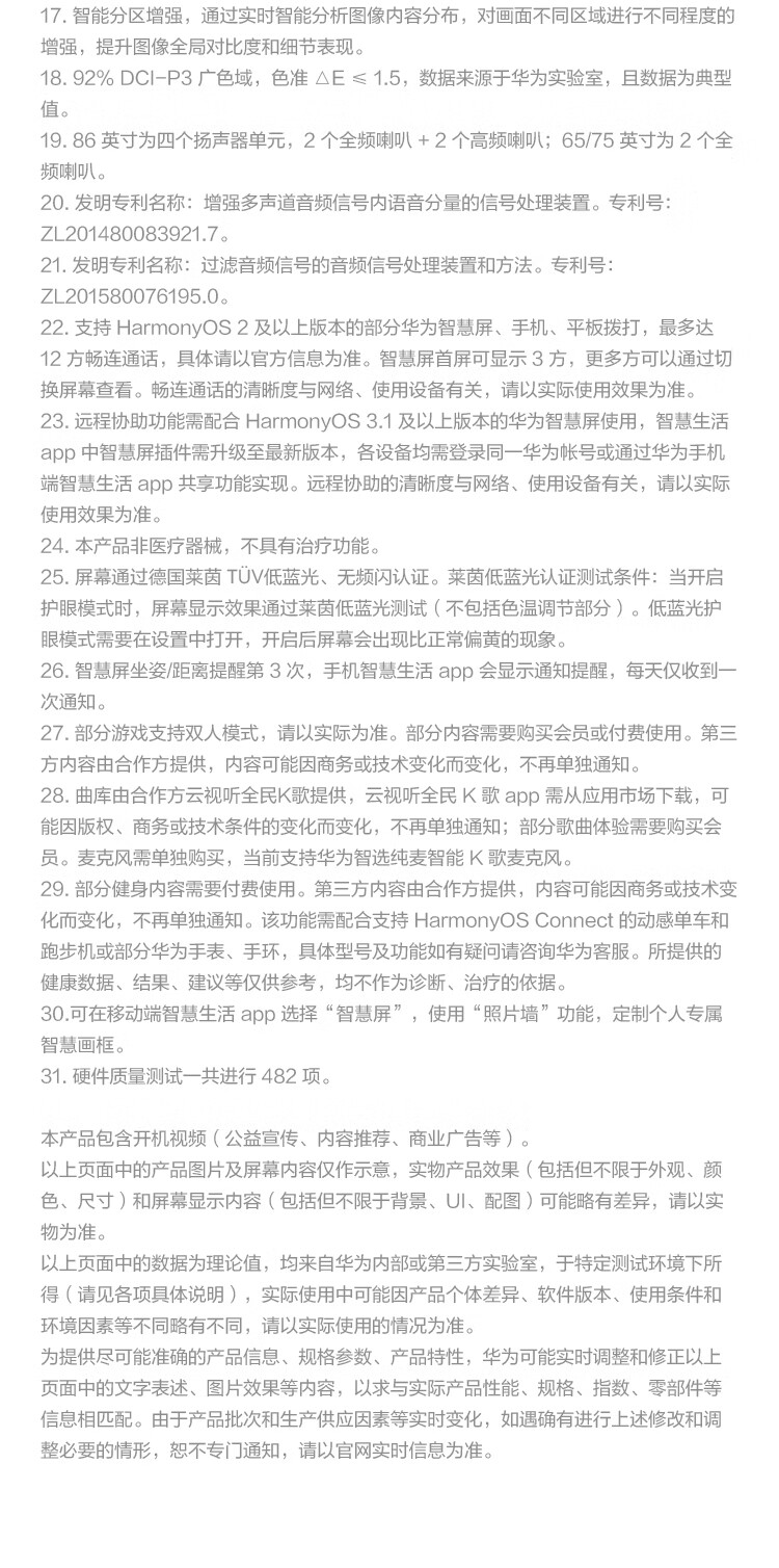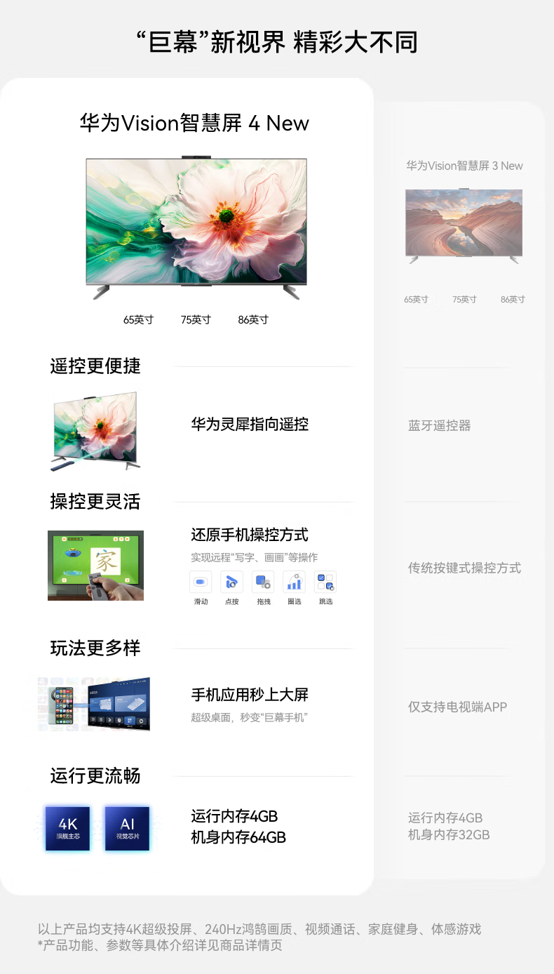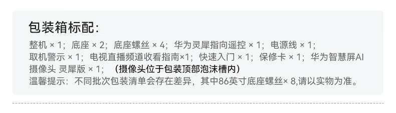 华为/Huawei HD86ARIN 普通电视设备(电视机)华为Vision智慧屏 4 86英寸 New 鸿蒙AI 灵犀指向遥控Mate 80投屏好搭档高清平板电视机