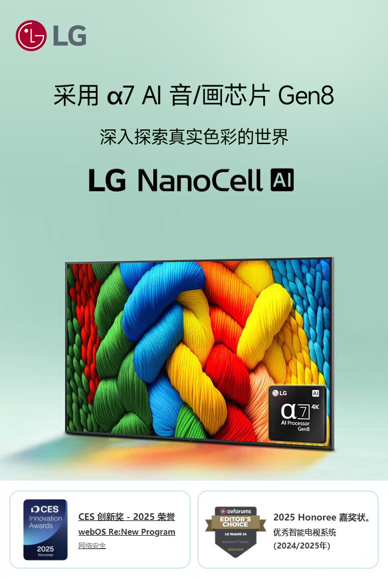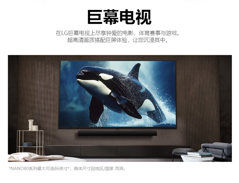 LG 86NANO80ACA 普通电视设备(电视机)LG NanoCell系列 AI NANO80 4K纯净色彩智能观影 开机无广告