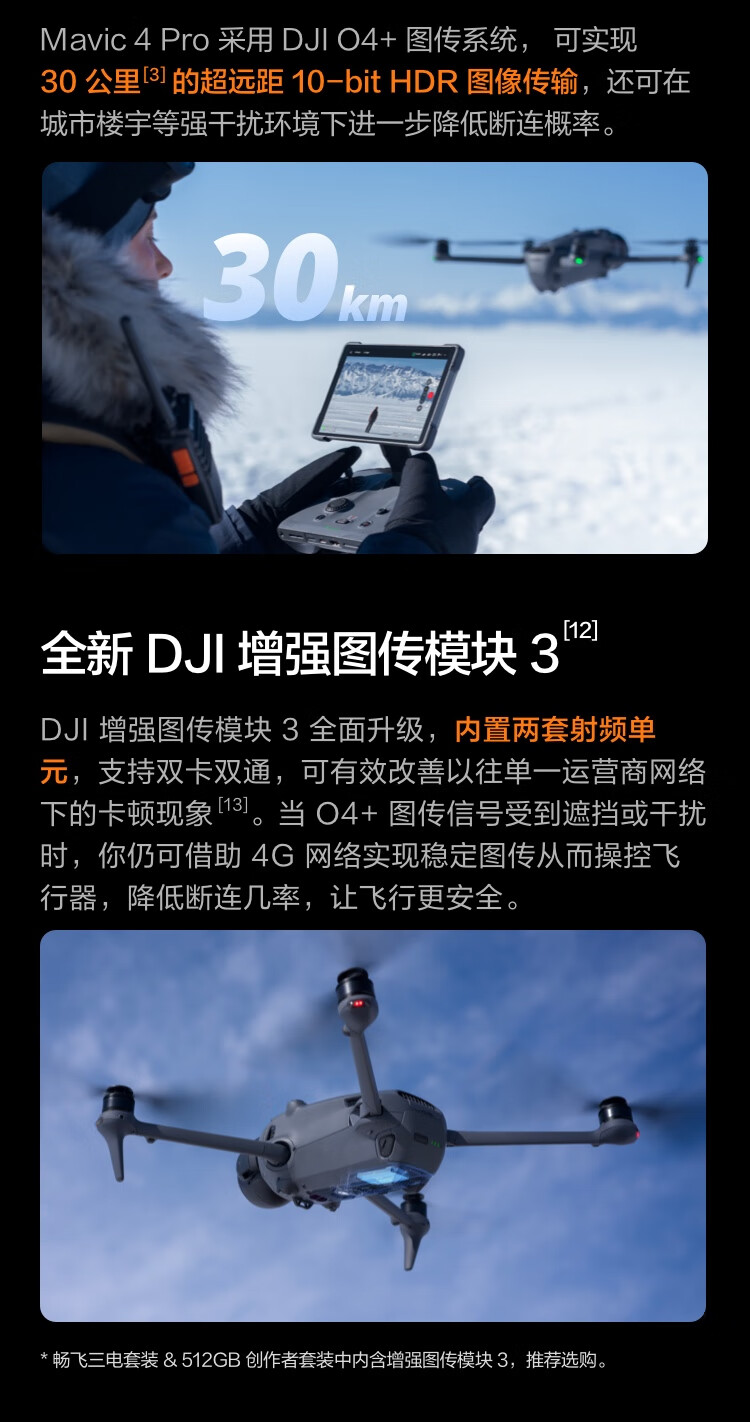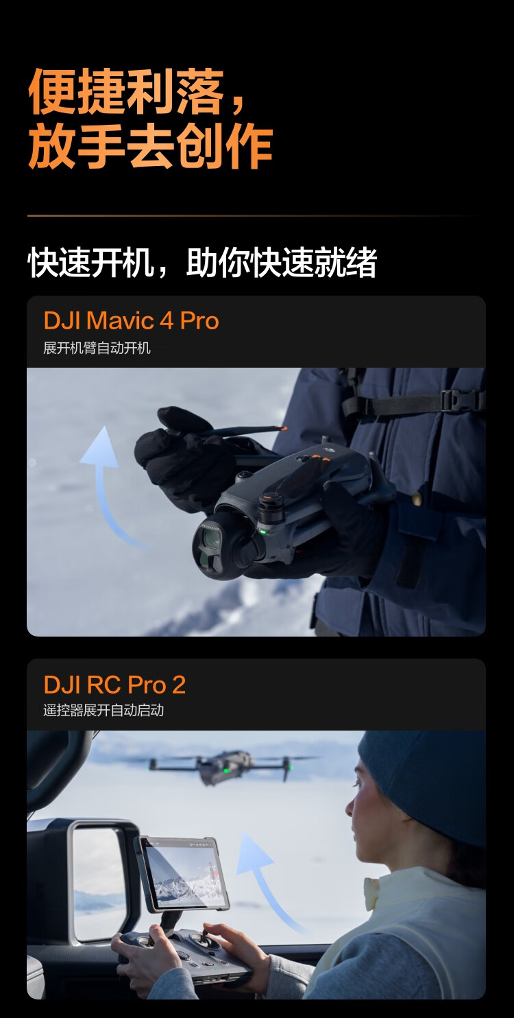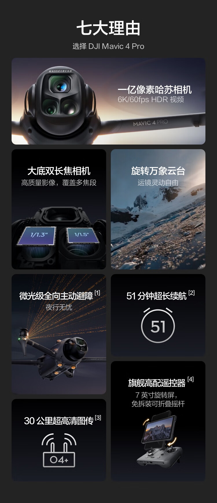 大疆/DJI DJI Mavic 4 Pro 无人机标准单电套装(DJI RC 2) 御4Pro三摄旗舰影像航拍机哈苏无人机+随心换2年+存储卡512G+大疆 御4 PR 镜套装(ID8/16/32/64)