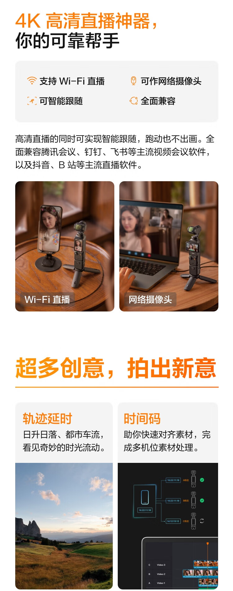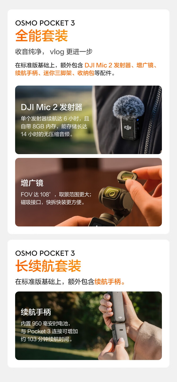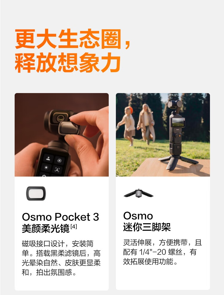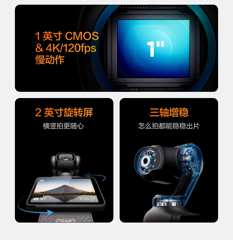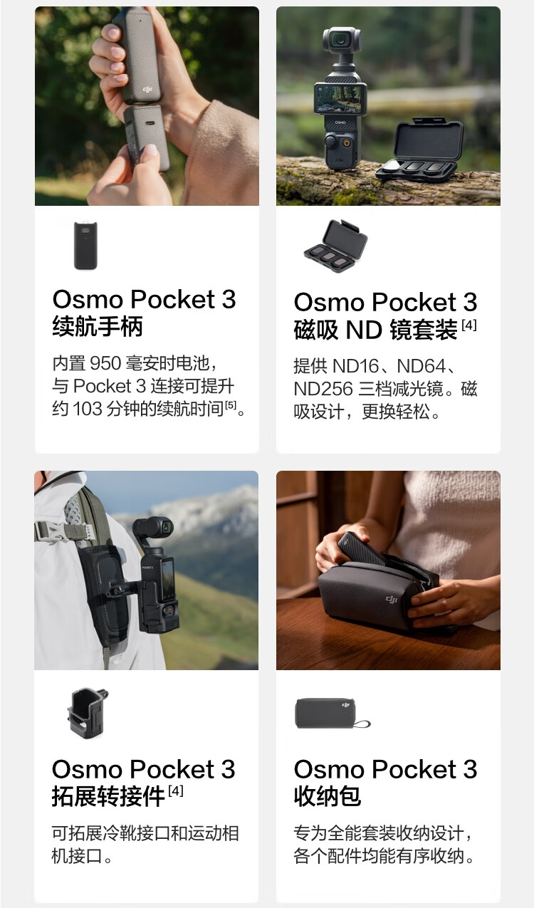 大疆/DJI Osmo Pocket 3 单电/微单相机一英寸口袋云台相机 OP灵眸手持数码相机 旅游摄影摄像 直播vlog拍摄 标准版 官方标配+续航手柄+支架+麦克风套装+512G高速存储卡