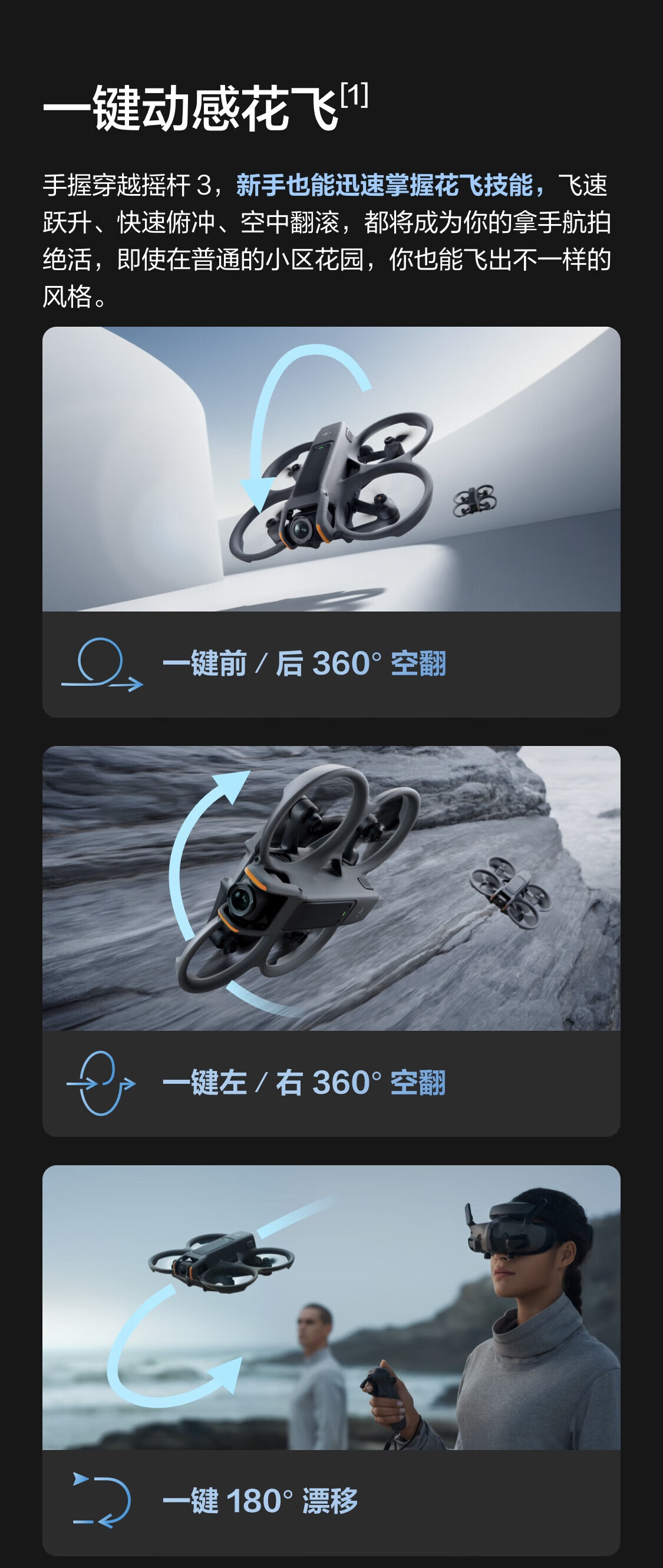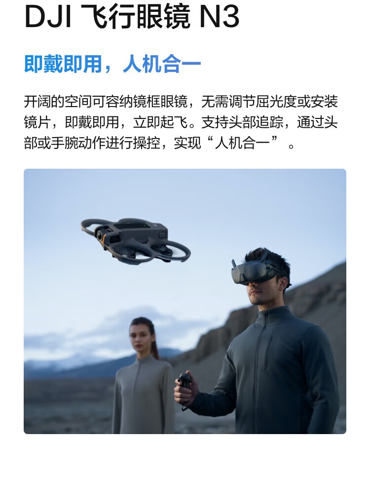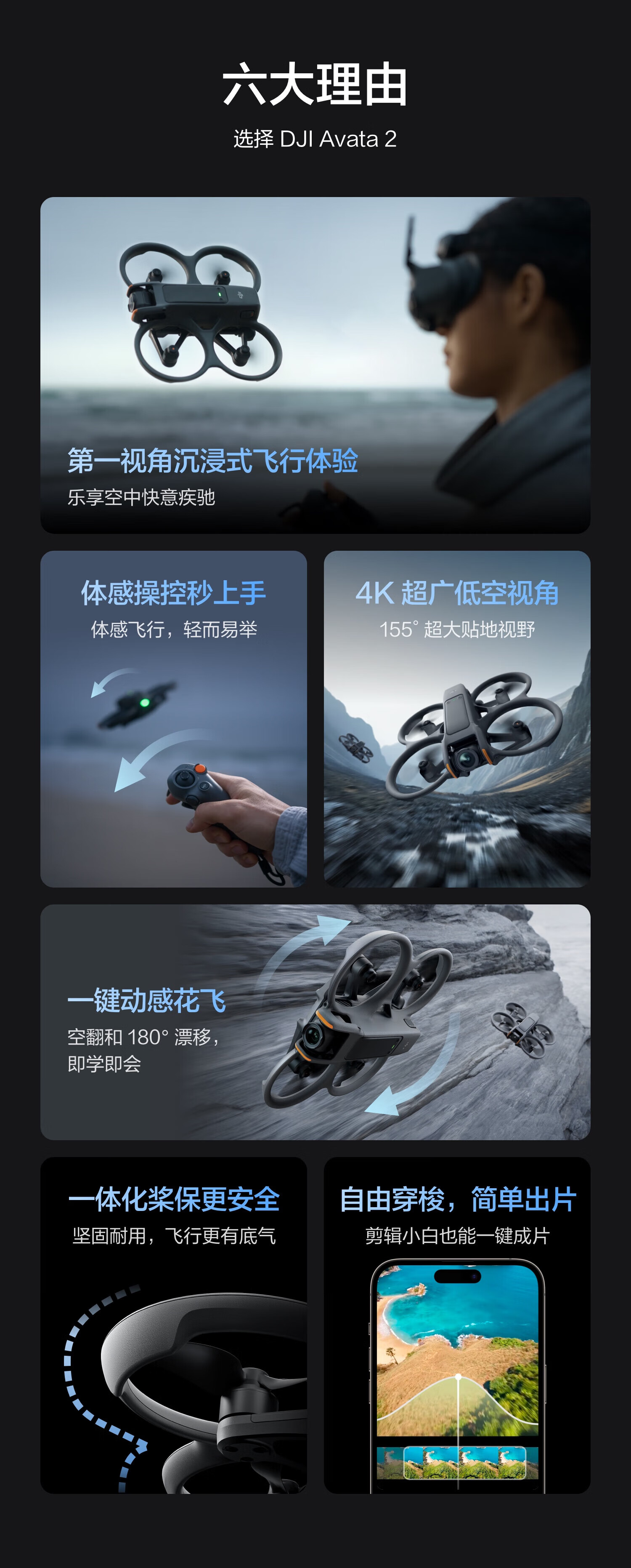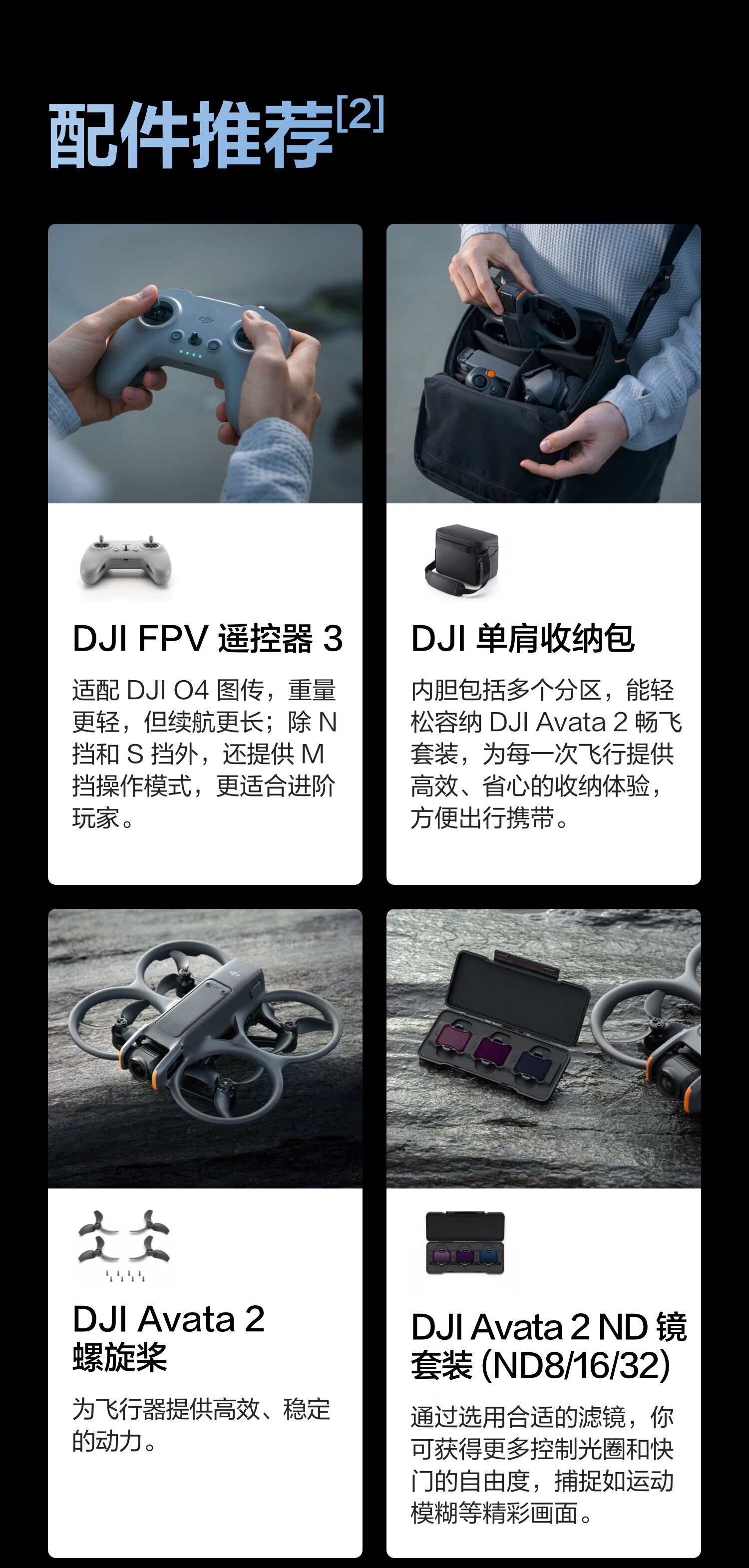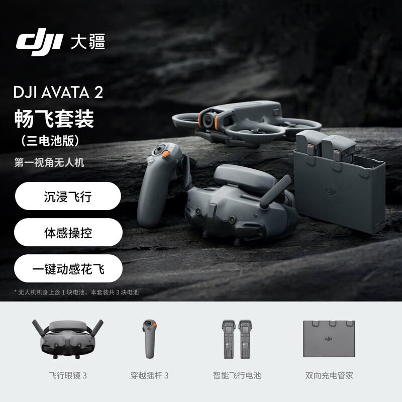 大疆/DJI Avata 2 无人机畅飞套装(三电版+DJI FPV 遥控器3)穿越航拍无人机 飞行眼镜体感操控沉浸式